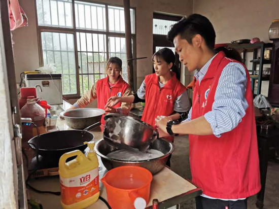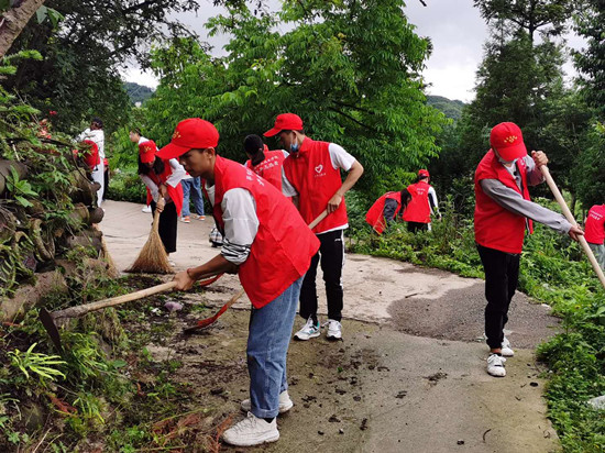 本月初以来,学院利用每周双休时间,组建了3批大学生志愿服务队100余次人深入九股村各村民组整治环境卫生,宣传文明村寨创建和卫生防疫知识,宣传招生工作,帮助鳏寡孤独打扫卫生。