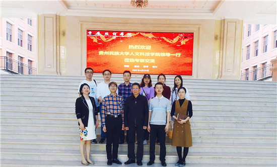 2021年4月29日,贵州民族大学人文科技学院副校长陈志教授一行前往重庆财经学院考察交流。在重庆财经学院考察期间,与重庆财经学院副校长沈民、校长助理房朝君及相关职能部门同志就学校办学情况座谈交流。此次考察,随行人员还有学校办公室主任刘广超、教务处常务副处长李纯虎、民族民间文化研究基地赵尔文达、学校办公室行政科苏安宁、教务处教学实践课吕冰亚等同志。