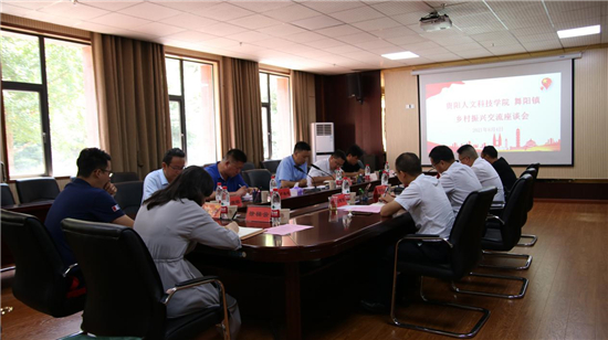 为进一步深化校地合作,做好脱贫攻坚与乡村振兴的有效衔接,8月4日下午,贵州民族大学人文科技学院于大学城校区行政楼205会议室召开乡村振兴交流座谈会。学校党委书记陆官虎,舞阳镇党委副书记、镇长兰绍松,舞阳镇党委委员、人大主席吴运昭,舞阳镇党委委员、副镇长王靖,舞阳镇党委委员、政法委书记刘炼钢、贵州知黔韵生物科技有限责任公司法人代表杨力出席座谈会。贵州民族大学人文科技学院对外交流合作处、科研处、组织人事部、经济管理学院相关负责人参加会议。会议由学校党委副书记马帅主持。