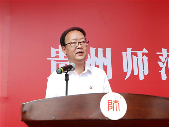研究生新生林郅其、谭天,本科生新生黄铭予、王浩宇作为学生代表发言,他们讲到,作为新时代的青年要积极响应党的号召,努力成为可堪大用、能担重任的栋梁之材。积极传承贵州师大人的家国情怀,始终保持奋发有为的精神状态,永远信党爱党为党。为民族复兴铺路架桥,为祖国建设添砖加瓦。