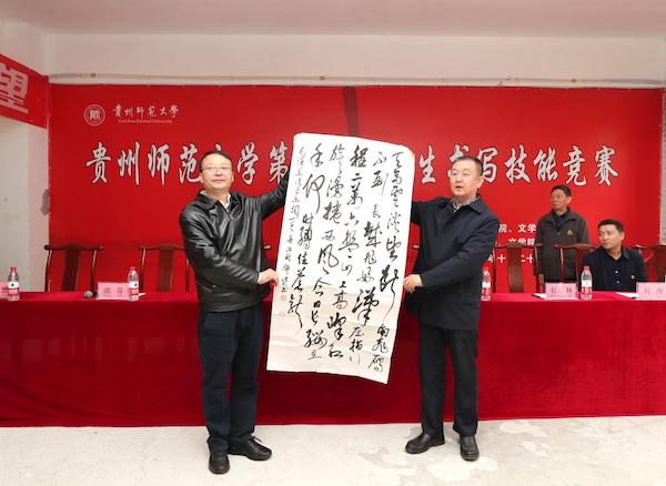 据悉,本次竞赛为了保证公平公正,评选出真正高质量的师范生书写作品,邀请了中国书法家协会会员、贵州省书法家协会名誉主席、原贵州省文化厅副厅长邓健,中国书法家协会会员、贵州民族大学书法专业硕士生导师韦宗林,贵州省级骨干教师、贵州师范大学贵安新区附属初级中学校长范向东,贵州省特级教师、贵阳市省府路小学副校长沈苏英,中国书法家协会会员、贵州师范大学文学院副教授王世鹏,贵州省书法家协会会员、贵州师范大学教师教育学院副教授印明富,贵州省书法家协会会员、贵州师范大学美术学院书法学系硕士生导师国腾飞等书法家、书法教学专家和一线教育专家担任评委。