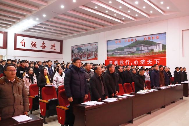 会议伊始,全体起立奏唱《中华人民共和国国歌》。