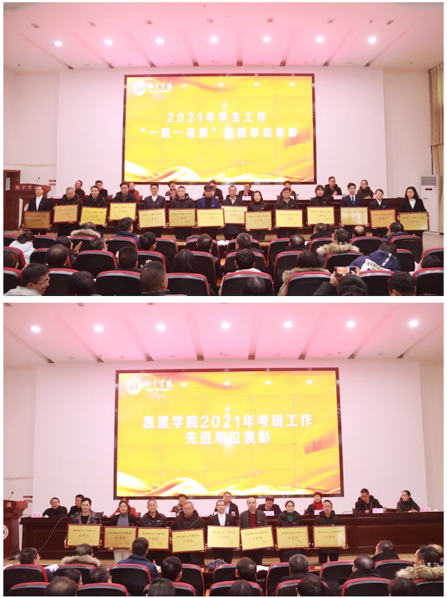 凯里学院校领导为2021年学生工作获奖的集体和个人代表颁奖。