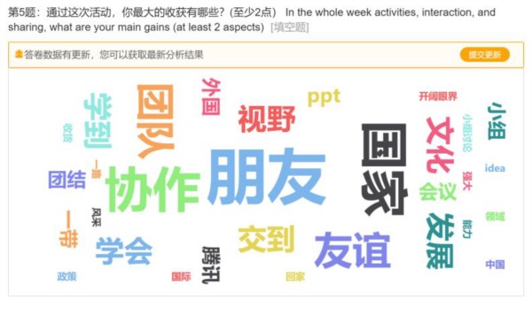 “我很喜欢中国的美食,很喜欢中国的文化,很荣幸能够参加此次实践活动。”“通过此次实践活动,让我认识了各个国家的新朋友,我们一定会保持联系,我很愿意参加这样的活动。”“贵州山清水秀、民族风情浓厚,等疫情结束,一定要到贵州去实地走走看看,观光旅游!”……参加此次活动,大家都表示受益匪浅,尤其是让国际学生对中国的国情、中国的文化有了更多的了解,大家在活动中增进了交流、促进 友谊、拓宽了视野、获得了成长。