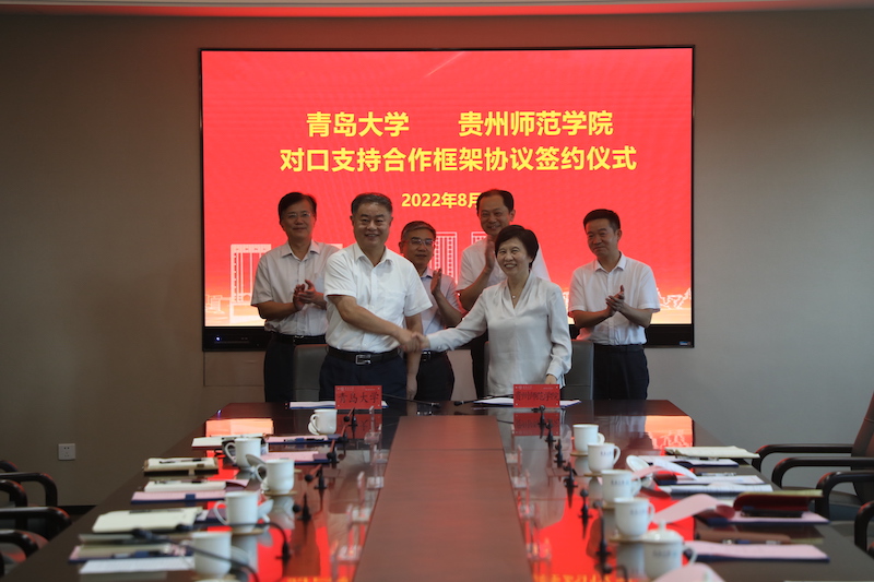 8月17日,贵州师范学院党委书记石培新、校长韦维率队赴青岛大学考察交流,与青岛大学党委书记胡金焱、校长夏东伟及相关职能部门负责人进行座谈,并签订新一轮对口支持合作框架协议。