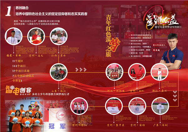 与共青团贵州省委共建“贵州省青年创新创业研究中心”为贵州青年学子创造优质平台:组织4场青创沙龙及6场青创讲座,服务全省青年2万余人;承办贵州省青少年机甲大师对抗赛,完成公益夏令营二十期,并列入“贵青杯”;与大疆共建全国首个steam师资培训基地;承办省科协全省中小学steam教师培训;在政务云搭建“青创云课堂”,点击量超20万次……“科创融合”育人成效亮点纷呈。