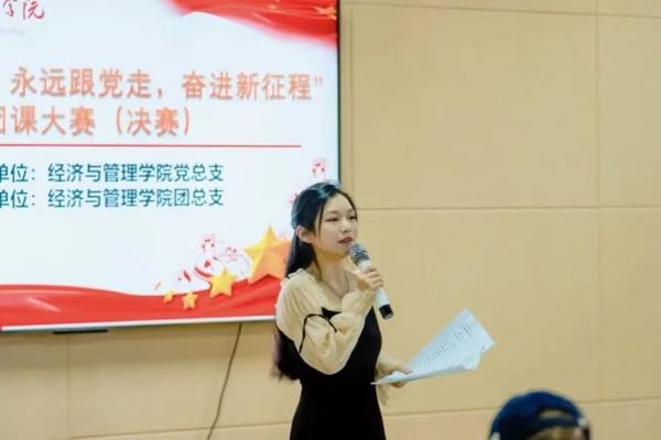决赛伊始,由经济与管理学院田丹副书记致辞,她提到学院组织微团课大赛有利于促进学院团支部组织建设和规范管理,进一步引导广大团员青年坚定理想信念,牢记初心使命,对提升广大团员青年的责任感、使命感和荣誉感具有重要意义。