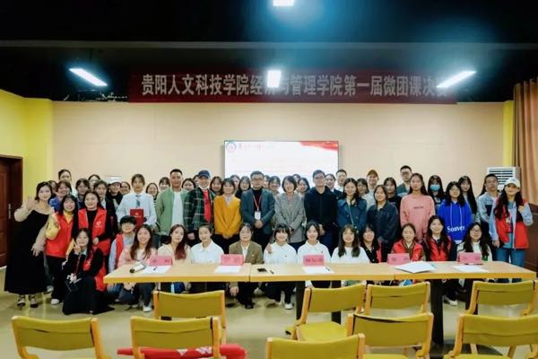 11月2日14:00,由经济与管理学院党总支主办,经济与管理学院团总支承办的“贵阳人文科技学院经济与管理学院第一届微团课大赛”在自信楼107路演厅成功举办。经过初赛激烈的角逐,共有十二支队伍进入决赛。本次决赛邀请校团委书记田仁贵,经济与管理学院党总支副书记田丹、吕渊,经济与管理学院辅导员唐卿、罗鹃担任评委。由2020级行政管理1班团支部张婷婷主持。