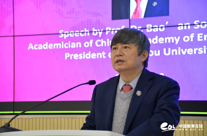 12月13日,贵州大学首个中外合作办学机构——贵州大学北阿拉巴马国际工程技术学院(以下简称:贵大北阿学院)2022级入学典礼在西校区德正楼线上+线下同步举行。中国工程院院士、贵州大学校长宋宝安,美国北阿拉巴马大学校长肯尼斯·基茨携双方学校领导班子、职能部门负责人、相关学院负责人参会,贵大北阿学院首届学生及家长200余人与会。