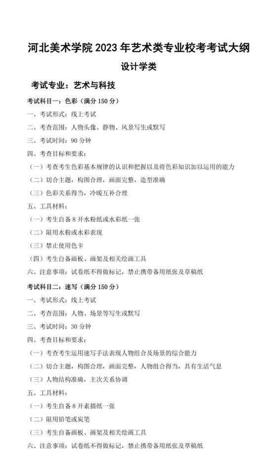河北美术学院2023年艺术类校考专业报考须知(贵州省)