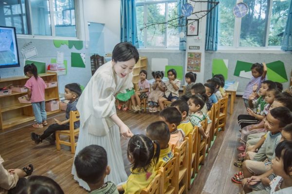 从江县是贵州最后脱贫摘帽的9个贫困县之一,而苗族聚居的丙妹镇大歹村,则是从江县最为偏远落后的村寨之一,经过决战决胜脱贫攻坚和贵州省教育厅“组团式”教育帮扶,这里的村容村貌和教育教学环境得到了极大改善。本次系列讲座也将大歹小学和大歹蝴蝶幼儿园作为重要一站。石春轩子团队师生来到大歹幼儿园,带着孩子们一齐唱起《祖国,祖国,我们爱你》,为孩子们种下发现美、感受美、创造美、传递美的种子,在大歹小学,为同学们教唱贵州当地红色歌谣,并讲述红色歌谣背后的故事,引导青少年肩负历史使命,传承红色基因,不负伟大时代。