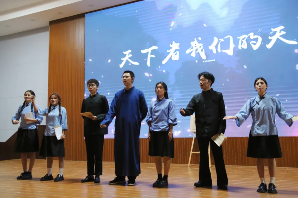 情景剧《我们的青春年代》,演员们齐声大喊“天下者,我们的天下,国家者,我们的国家“,铿锵有力的声音,唤出了当代青年心中的热血,只有胸怀天下的青年,才能创造出屹立于世界的中国。