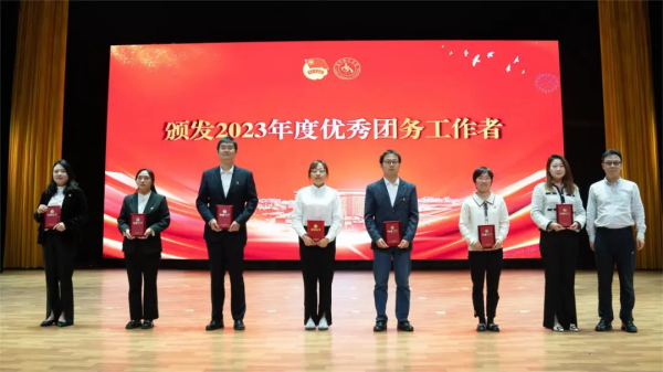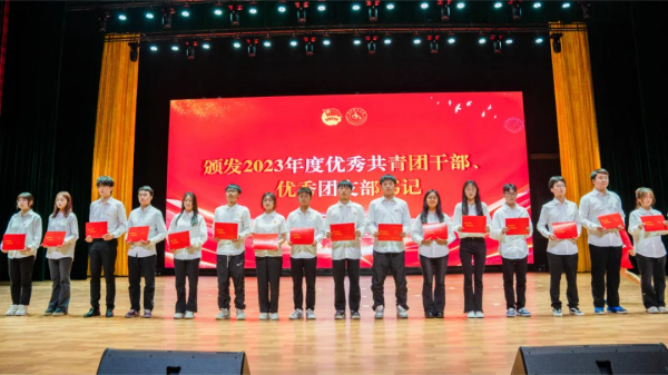 与会领导分别为2023年度共青团“五四”先进集体、先进个人,优秀星级社团、优秀社长,寒假社会实践优秀成果、优秀个人进行颁奖并合影留念。