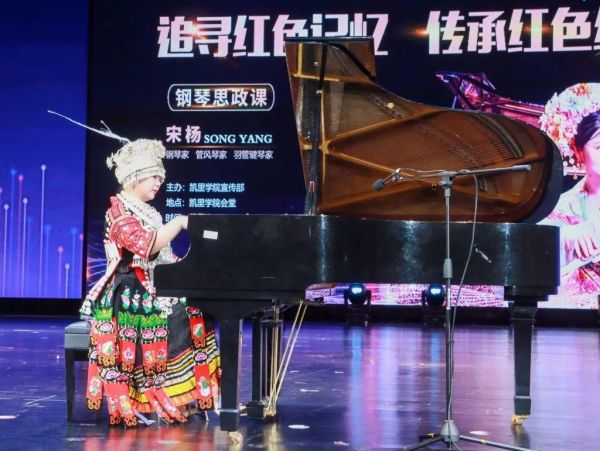 6月14日下午,“追寻红色记忆,传承红色经典”钢琴思政课在凯里学院会堂举行。本次课程以音乐为载体,特邀钢琴家、管风琴家、羽管键琴家宋杨倾情演绎,通过演奏富有教育意义的红色经典作品,让红色记忆渗透到每一个音符之中。