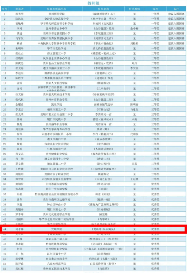 安顺学院师生在“笔墨中国”汉字书写大赛贵州赛区复赛中获奖