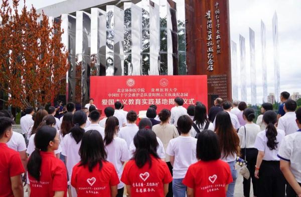 7月20日上午,“北京协和医学院贵州医科大学爱国主义教育实践基地”揭牌仪式在贵阳市图云关抗战纪念馆爱国主义教育实践基地举行。中国医学科学院北京协和医学院院校长,中国工程院副院长王辰院士,中国医学科学院北京协和医学院党委副书记张勤,贵阳市人民政府副市长龙丛,贵州省人民医院党委书记刘代顺,贵阳市红十字会党组书记张书云及贵州医科大学领导班子出席。