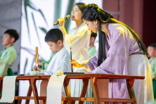 当天,舞台旁还同步展示了毕节梁才学校小学部400余件社团书画作品。一幅幅精美的艺术作品主题丰富、形式多样,涉及绘画、书法、剪纸等多个品类。绘画或细腻温婉或豪放不羁,展现无尽想象力,书法或苍劲有力或行云流水,传递出传统文化的智慧与神韵,为观众呈现了一个绚丽多姿的艺术世界。