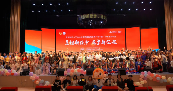 9月11日晚,贵州医科大学2024年“勇担新使命逐梦新征程”迎新晚会暨“贵小医”IP形象发布会在云漫湖校区大礼堂隆重举行。校党委副书记汤磊,校党委委员、副校长曾柱出席活动现场,校团委及相关职能部门负责人,各学院党委副书记、团委负责人,与来自五湖四海的2024级新生齐聚一堂,共同欣赏一场精彩纷呈的晚会。活动吸引了广泛关注,“青春贵医”视频号线上直播累计观看人数超1.5万人次,点赞次数5.3万。