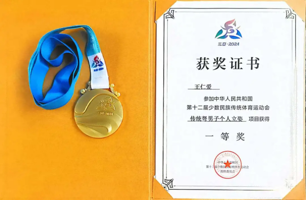 安顺学院教师王仁爱在男子传统弩立姿项目比赛中获得金牌