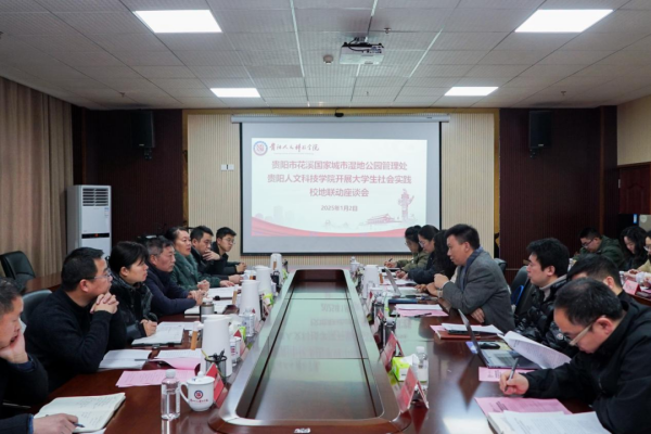 2025年1月2日,贵阳花溪国家城市湿地公园管理处处长徐书培同志与花溪区宣传部、团区委、人力资源和社会保障局等领导一行来访贵阳人文科技学院,就大学生社会实践校地联动事宜展开深入会谈。