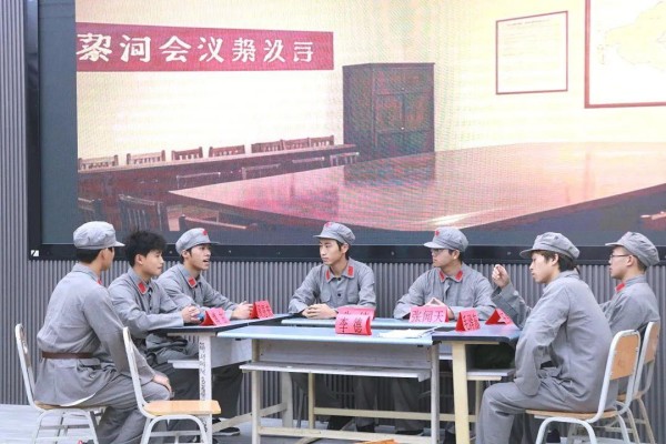 决赛现场融思政教育于赛事氛围,各参赛队伍聚焦贵州革命历史,以真挚情感和精湛表演,通过沉浸式舞台剧、情景朗诵等形式,演绎了邓恩铭、王若飞、林青等贵州籍革命先烈的生平事迹,再现了土地革命、抗日战争到解放战争时期贵州儿女为民族独立和人民解放英勇献身的场景。这些表演是对先烈功绩的致敬,也体现了对“红色贵州”精神的传承。从遵义会议会址到息烽集中营旧址,从红军长征小道到校园,这场大赛连接了历史与现实、理论与实践。