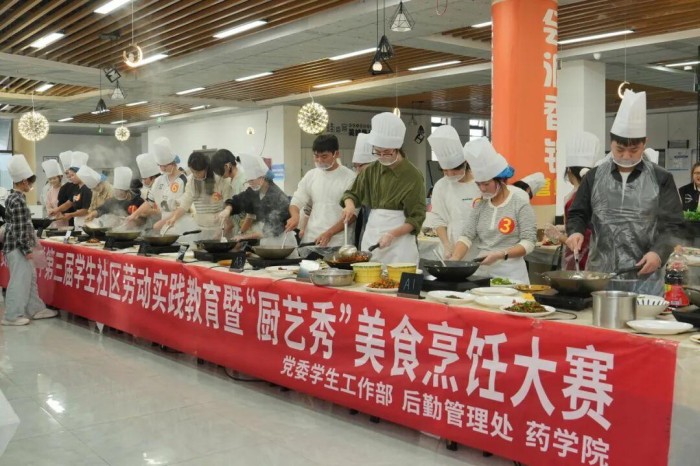 为深入贯彻劳动教育理念,落实“五育融合”育人要求,11月7日下午,学生社区举办的第三届“厨艺秀”劳动实践在四大食堂三楼教工餐区同步开展。活动得到了后勤管理处、保卫处、关心下一代工作委员会等单位的大力支持,由药学院、护理学院、公共卫生与健康学院、基础医学院共同承办,来自全校各学院的40支参赛队伍同台竞技,在灶台间演绎劳动之美,在烟火气中收获成长。