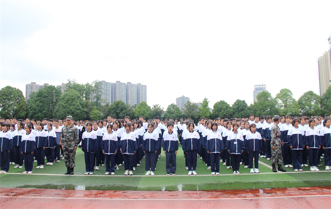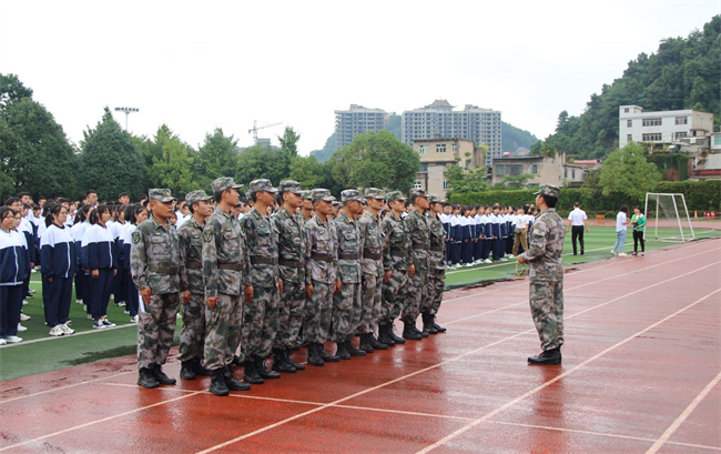 最后,周真美校长作了军训动员讲话,他代表学校向高一新生表示热烈欢迎,并对全体教官致以崇高的敬意。他希望2021级全体参训学生刻苦训练,圆满完成各项训练任务,度过一段美好的绿色人生。弘扬解放军的优良传统,学习解放军艰苦朴素的工作作风和吃苦耐劳的革命精神,以优异的军训成果和良好的精神风貌充分展示高一新生的风采。