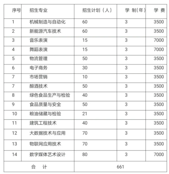 备注:招生专业可根据市场及企业需求的实际情况增设,专业招生数根据报名人数进行调整。