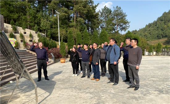 当日14时,党支部全体党员来到困牛山红军战斗遗址纪念碑前,向捍卫人民而壮烈牺牲的红军烈士鞠躬、默哀、敬献鲜花,重温入党誓词,聆听战斗英模事迹,接受革命精神洗礼。
