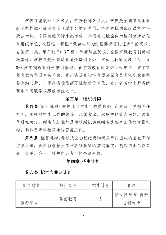 贵阳幼儿师范高等专科学校2021年高职扩招专项招生章程