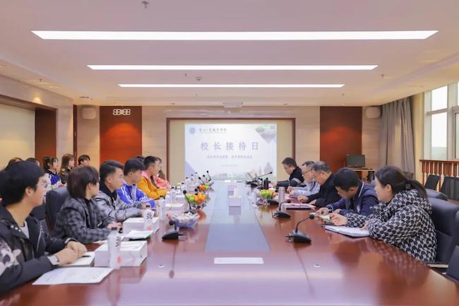 为更好的践行贵州工商职业学院“以学生为中心”理念,加强学校领导与同学们的面对面沟通,帮助同学们解决在校学习生活中遇到的一些“急难愁盼”问题,12月14日,我为学校提提案,我与学校共成长——贵州工商职业学院校长接待学生日活动在自强楼九楼会议室举行,现场听取和解决同学们学习和生活中遇到的困难。受执行校长尹艺霏委托,常务副校长潘毅、副校长陈龙斌,学校体验管理中心相关负责人以及学生代表参加会议。