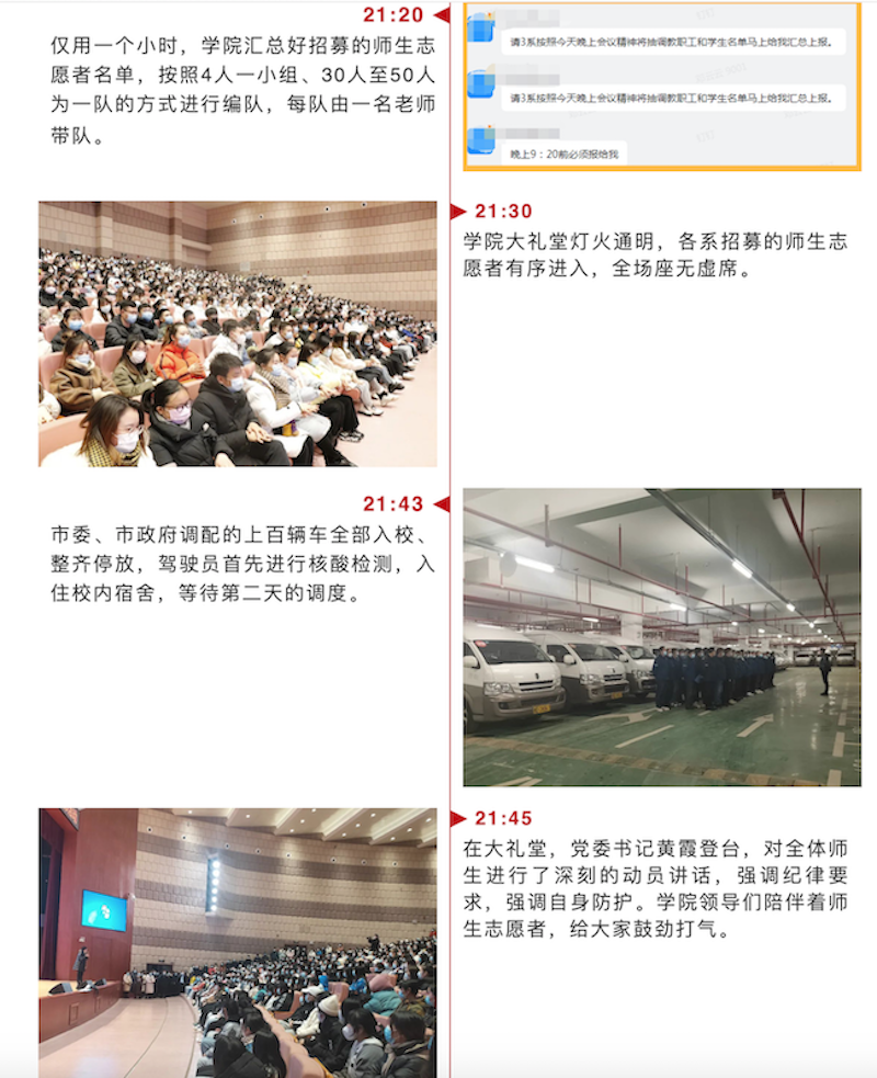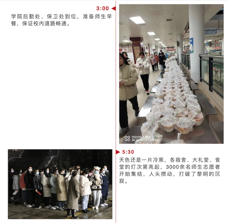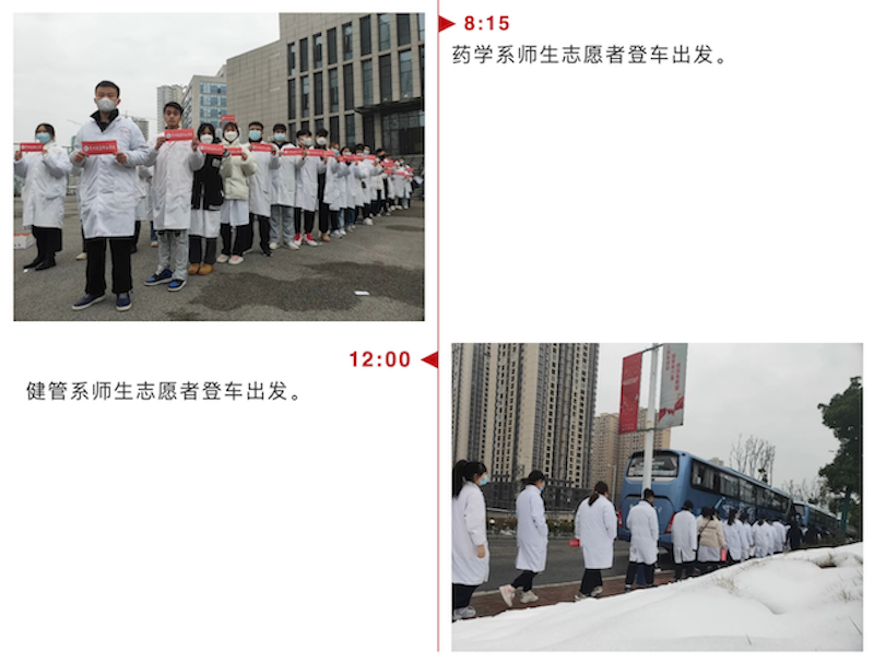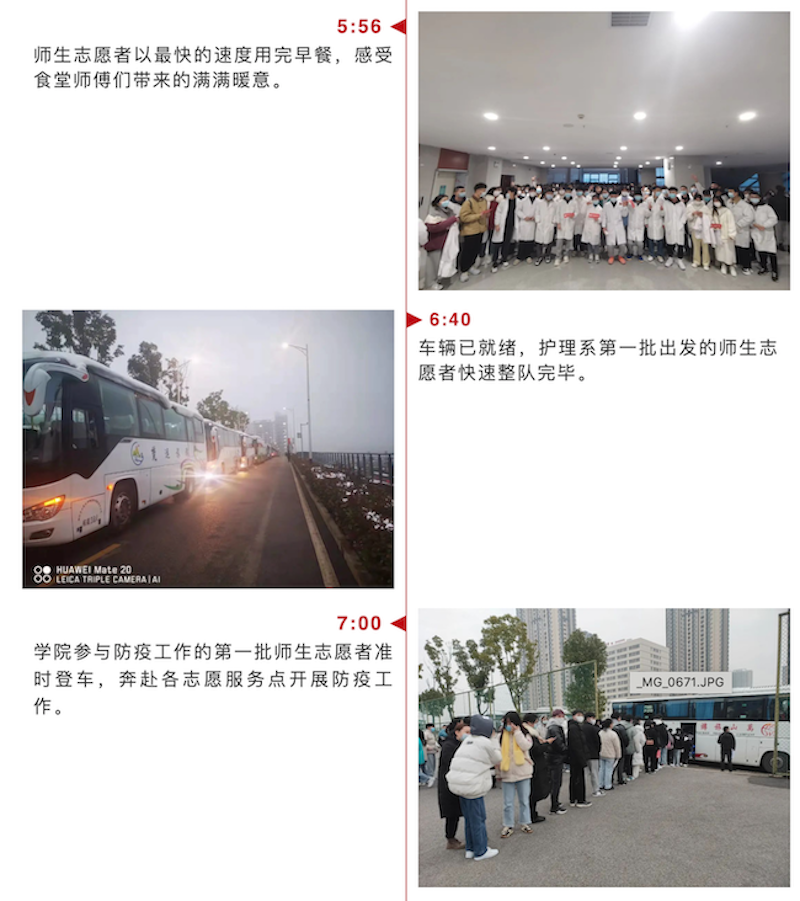12月29日清晨7:00开始,第一批师生有序登车出征,奔赴各志愿服务点投身防疫工作。