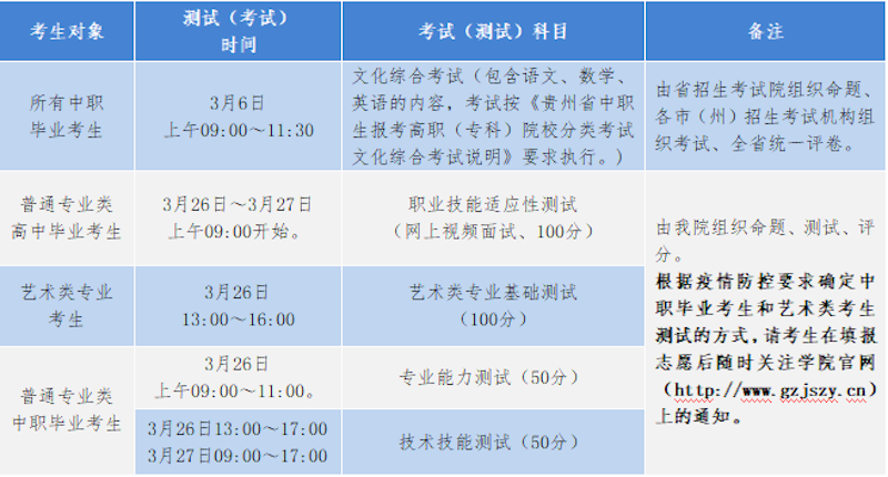 2.贵州户籍退役军人和我省下岗失业人员、农民工、高素质农民、企业员工和基层农技人员等报名时间另行通知(根据贵州省招生考试院通知要求确定)。其报名要求按照《省招生委员会关于做好2022年高职(专科)分类考试招生工作的通知》中“报名流程”的规定执行。