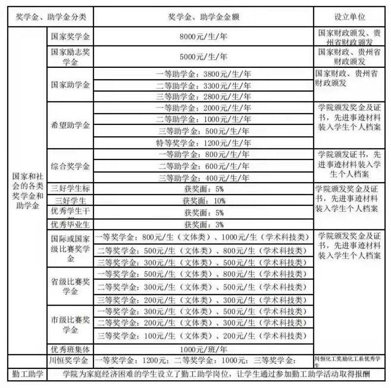 第十三条 国家奖学金:国家奖学金标准8000元/人/年:国家励志奖学金标准5000元/人/年;另外,贵州应用技术职业学院设有希望奖学金、学院奖学金,奖励各方面有突出表现的优秀学生。