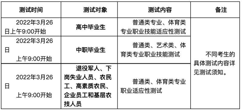 ③填报体育类专业的中职毕业生,只需参加体育类专业职业技能测试。