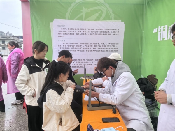 2024年12月5日,铜仁职业技术学院“铜心协力·医路同行”志愿服务队走进铜仁市中南门古城团结广场,参与了由省委社会工作部与团省委联合举办的主题为“志愿黔行新征程·奋力建功新时代”的贵州省2024年“12·5”国际志愿者日省级志愿服务示范活动。此次活动得到了学院的高度重视,并吸引了众多市民积极参与。