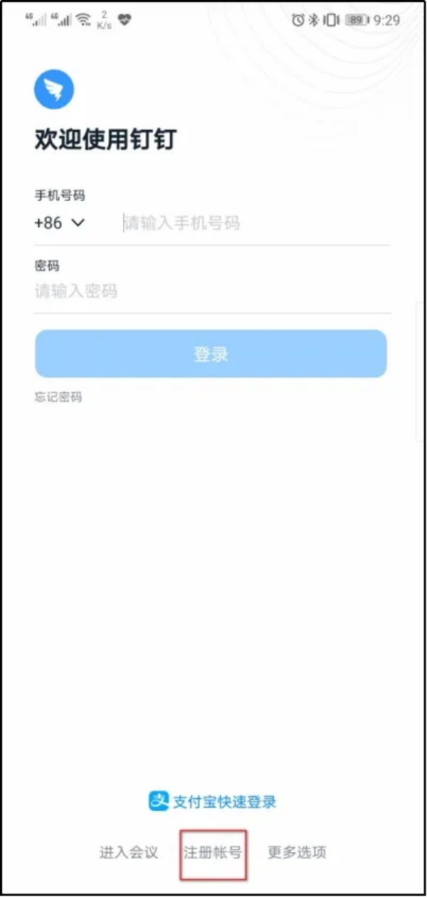 ①点击钉钉注册账号