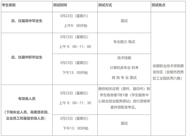 2025年分类考试招生“职业能力测试”即将开始,凡填报安顺职业技术学院志愿的考生均应参加职业能力测试!(高中毕业生学业水平成绩不符合报考条件及中职文化综合考试成绩缺考的不能参加测试)