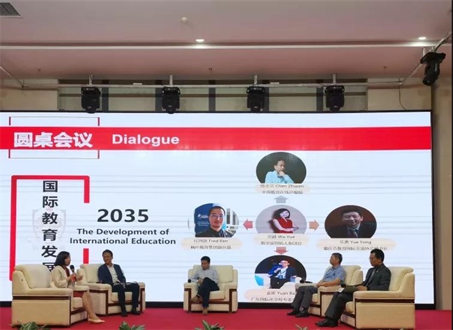 总编辑陈志文、重庆市教育国际交流协会秘书长乐勇、广东国际化学校专委会副主任袁拔以及枫叶教育集团副总裁任鸿鸽,共同探讨《中国教育现代化2035》指导下的国际教育发展方向。