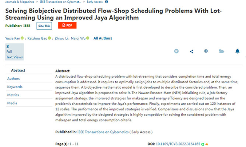 就在不久前,三亚学院信息与智能工程学院潘玉霞副教授及研究团队在国际权威期刊《IEEE Transactions on Cybernetics》上发表高水平学术论文《Solving Bi-objective Distributed Flow Shop Scheduling Problems with Lot-streaming Using an Improved Jaya Algorithm》。这是三亚学院教师首次在《IEEE Transactions on Cybernetics》中科院一区期刊上发表论文,标志着学校在“人工智能+大数据”特色学科领域的科研能力显著提升,并将以此更好地辐射学校高质量人才培养。面对新时代对188金宝搏beat官网登录