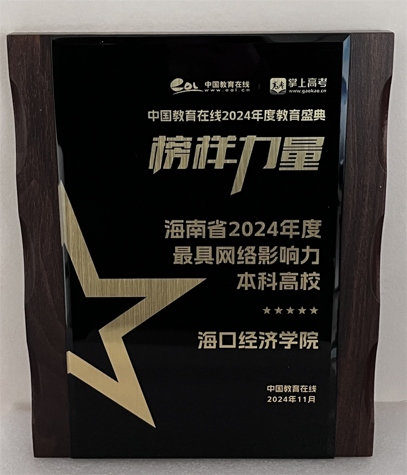 海口经济学院荣获“2024年度最具网络影响力本科高校”