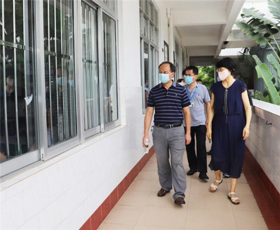 詹少斌书记到综合楼进行检查指导。他详细了解并检查了学生动态管控、疫情防控举措落实、课堂教学等教学情况。相关部门就防控工作思路以及相关教学安排进行了汇报。党政办公室、教务处、质量监控中心、经济管理学院、国际教育与旅游学院等部门负责人陪同检查。