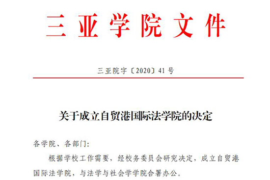 6月1日,中共中央、国务院印发了《海南自由贸易港建设总体方案》,海南驶向了高质量高标准建设自由贸易港的快车道,正式进入“自由贸易港时代”。6月8日,经校务委员会决定,三亚学院新成立“自贸港国际法学院”和“未来技术学院”,作为三亚市创办最早、规模最大的本科院校,三亚学院的办学始终紧紧依托海南的区位优势,前瞻海南“未来岛”的整体布局。三亚学院校长陆丹表示,“响应政策、用好环境机遇,是我们三亚学院的一贯作风,我们有信心也有能力趁势而为,扬帆远航。”