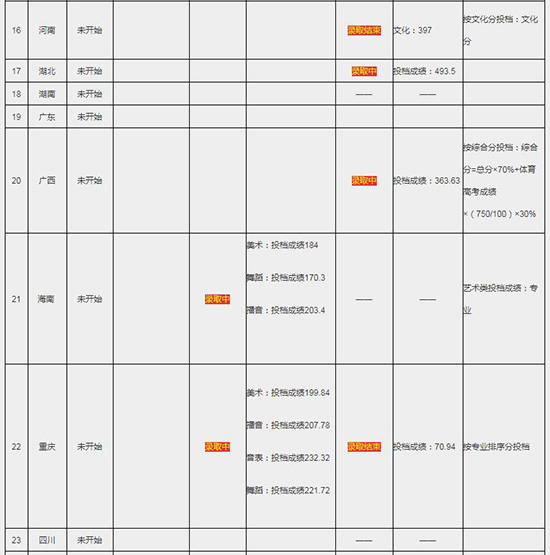 三亚学院2020年招生录取进程表