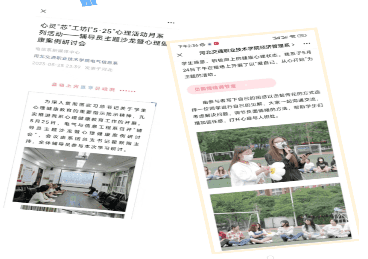各系(分院)也结合实际情况,通过灵活多样的形式,利用各类新媒体平台,推送大学生心理健康知识普及和宣传教育的文章,举办了各类线上互动活动。
