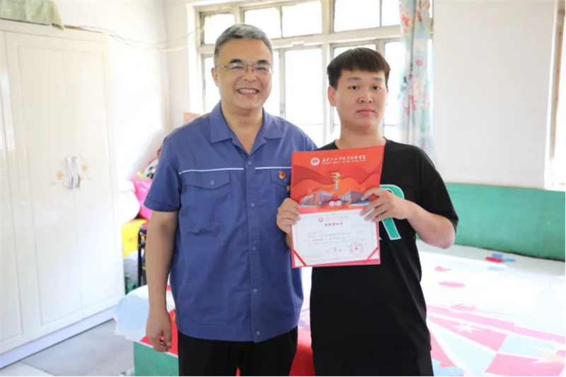 在大一新生刘仕杰家中,龚宏院长向刘仕杰发出首届“001号”录取通知书,并详细了解了刘仕杰的学业规划、入学准备等情况,介绍了学院的“奖、助、贷、勤、俭、补”资助政策,要求相关工作人员做好跟踪服务,保障家庭困难学生顺利完成大学生活。刘仕杰说:“我对崭新的校园生活充满了期待,一定不辜负家长和老师的关心期望,用成绩回应大家的关怀,以行动回报社会。”
