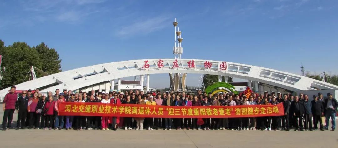 为丰富学院广大离退休人员精神文化生活,点赞新时代、奋进新征程,引导老同志一如既往地关注、支持学院工作,继续发挥自身优势,积极为学院高质量发展贡献力量,10月10日,河北交通职业技术学院离退休工作处组织100余名老同志在石家庄市植物园举办了离退休人员“迎三节度重阳敬老爱老”健步走活动。
