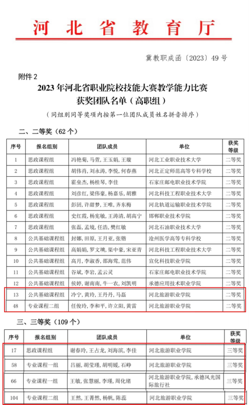 河北旅游职业学院荣获2023全国职业院校技能大赛教师教学能力比赛二等奖