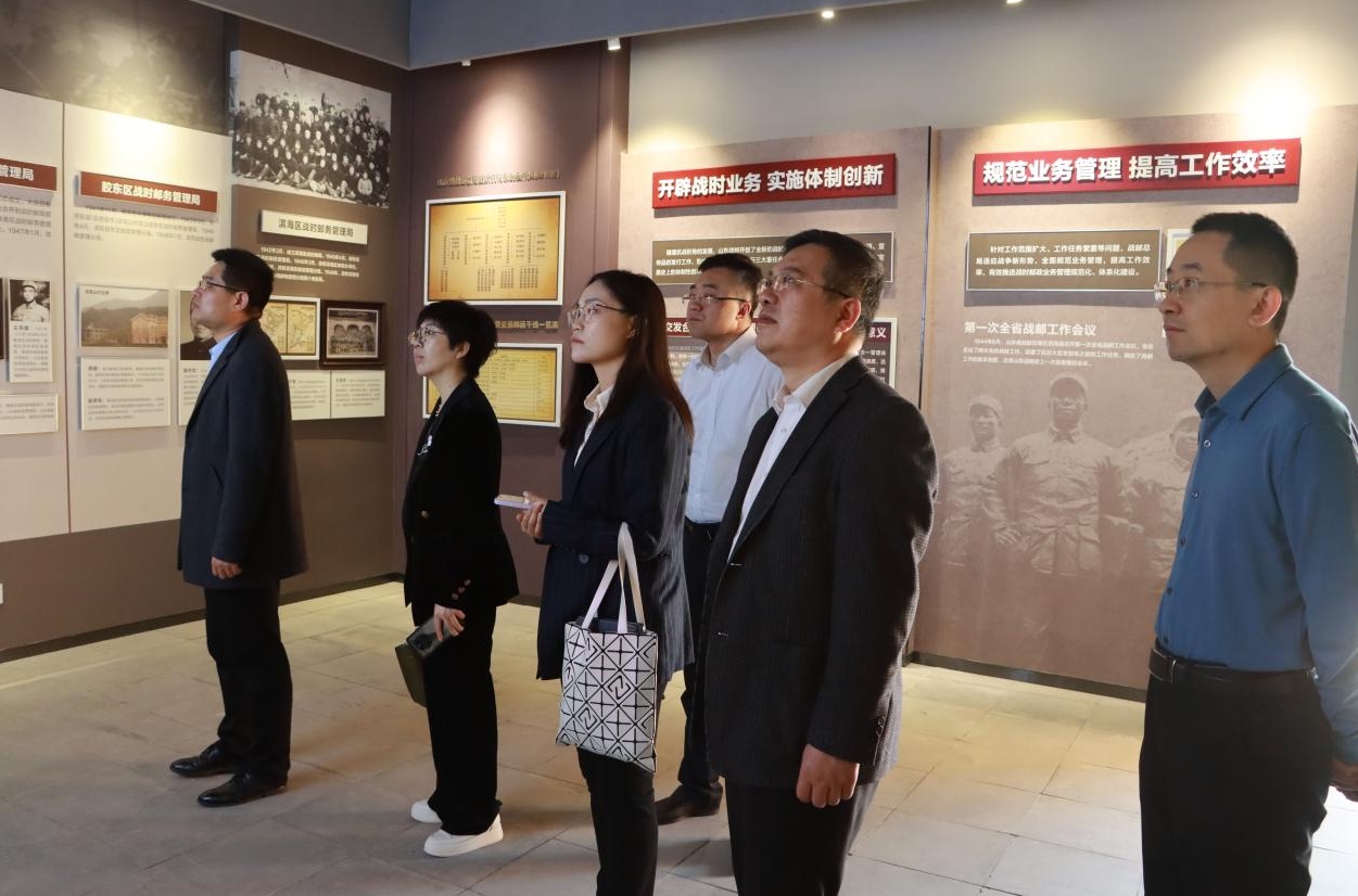 为更好发挥邮政红色资源和革命文化的育人优势,有效赋能学院“大思政课”建设,4月中旬,石邮学院党委党建工作部、党委宣传部,马克思主义学院,学生处、团委等教师一行5人赴山东战邮纪念馆开展调研学习。踏着邮政红色足迹,石邮学院教师先后参观山东战邮成立旧址、山东战邮革命传统与企业文化教育基地和红嫂纪念馆,详细了解了山东战邮在抗日战争和解放战争时期的奋斗历程和光辉业绩;认真学习了山东邮政优秀革命传统与企业文化的历史渊源;仔细聆听了红色基因引领邮政事业高质量发展的特色经验和创新举措。