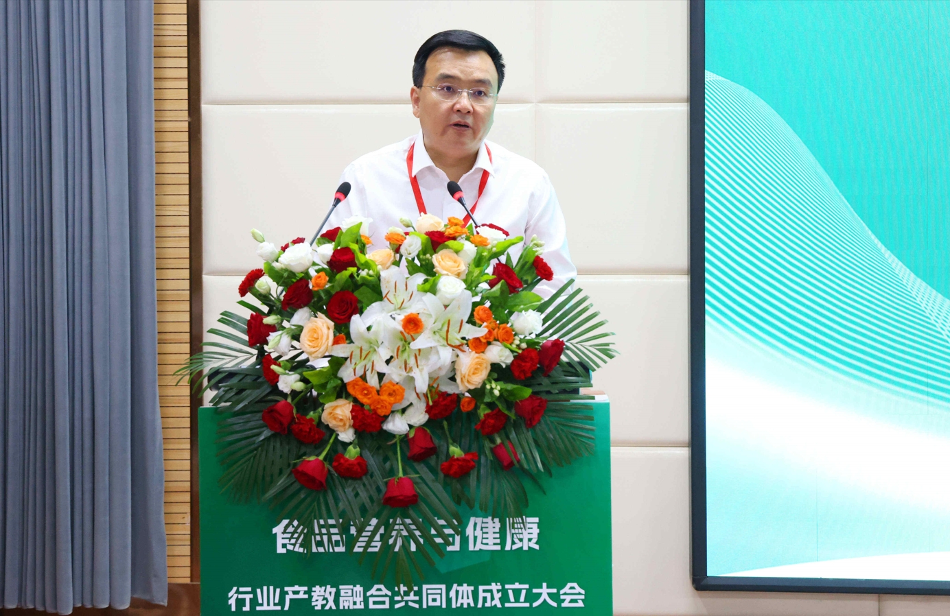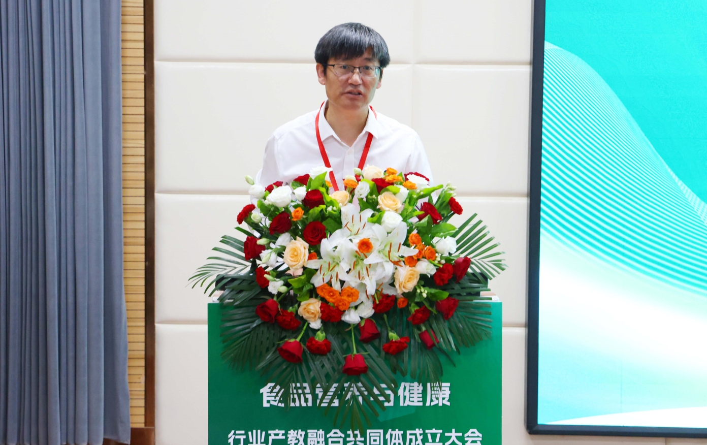 王颉代表河北省食品学会向共同体的成立表示热烈祝贺!他表示,食品营养与健康行业产教融合共同体的成立,是贯彻落实中共中央办公厅、国务院办公厅《关于深化现代职业教育体系建设改革的意见》等文件精神的具体行动,是积极对接食品产业需求、响应新质生产力发展要求的重要举措,体现了主办方对教育链、人才链、产业链深度融合的高度重视。希望共同打造一个开放、共享、共赢的平台,为推动食品营养与健康产业的发展培养出更多的高素质技术技能人才、能工巧匠和大国工匠。